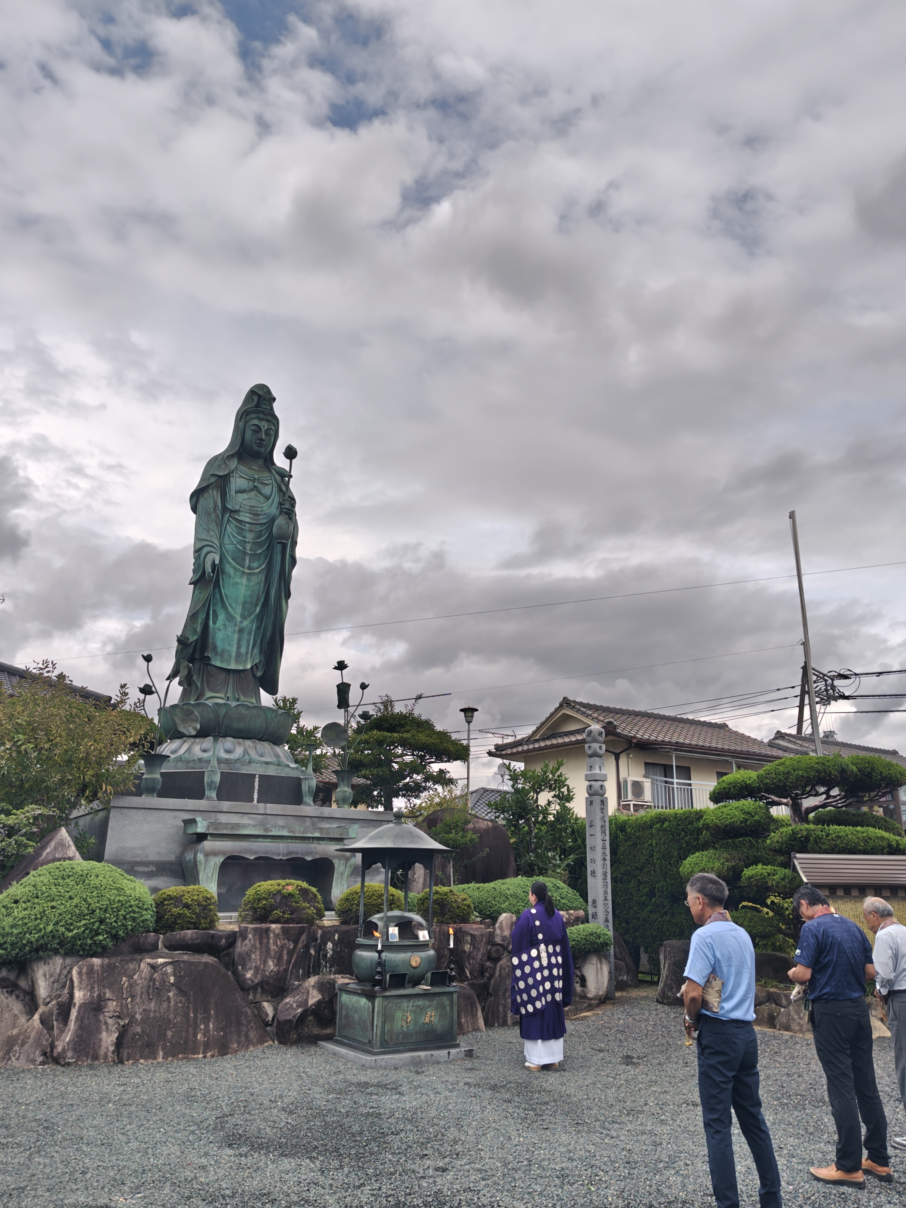 この観音様は、非常に慈悲深い仏様で、大きな衣で皆様を包み込むようにして、皆様を見守り、そして救って下さる仏様です。